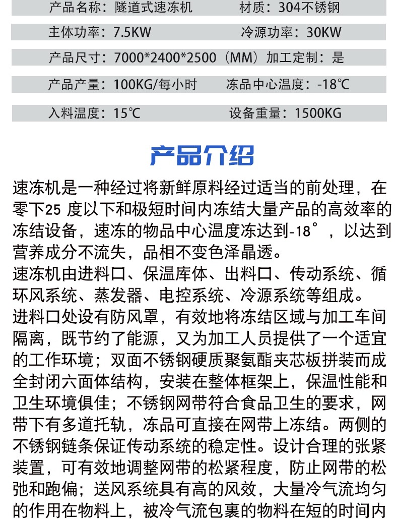 隧道式速冻机 低温冷藏保鲜速冻设备 水饺汤圆豆沙包食品速冻机