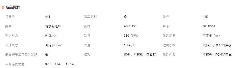 2、链板有不锈钢和工程塑料等材质,规格品种繁多,可根据输送物料和工艺要求选用,能满足各行各业不同的需求;