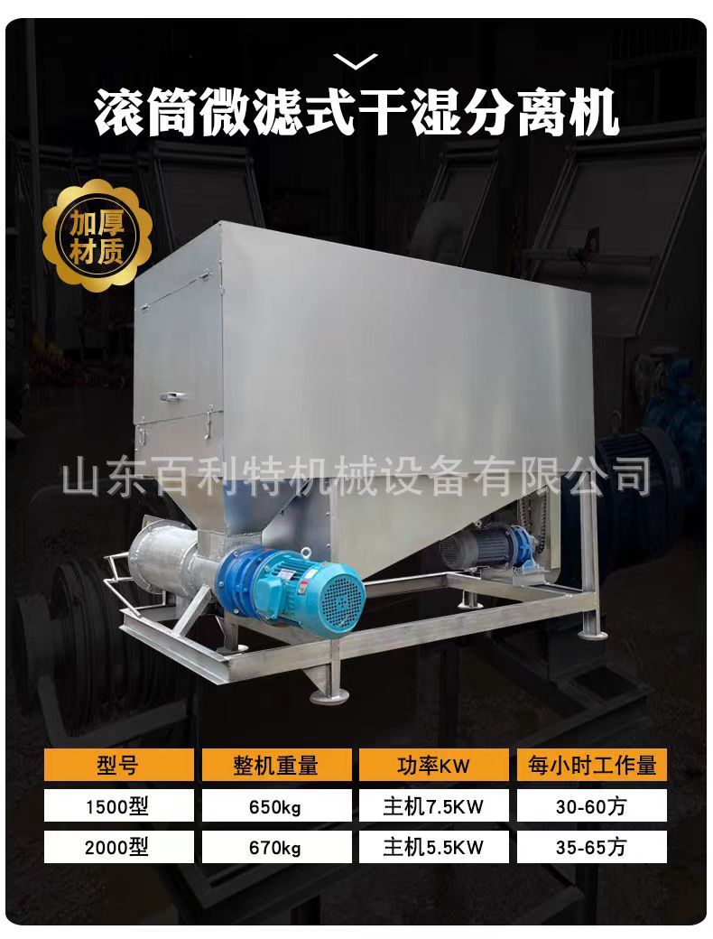 滚筒微滤式干湿分离机猪粪脱水机大型养殖场猪粪牛粪鸡粪分离机