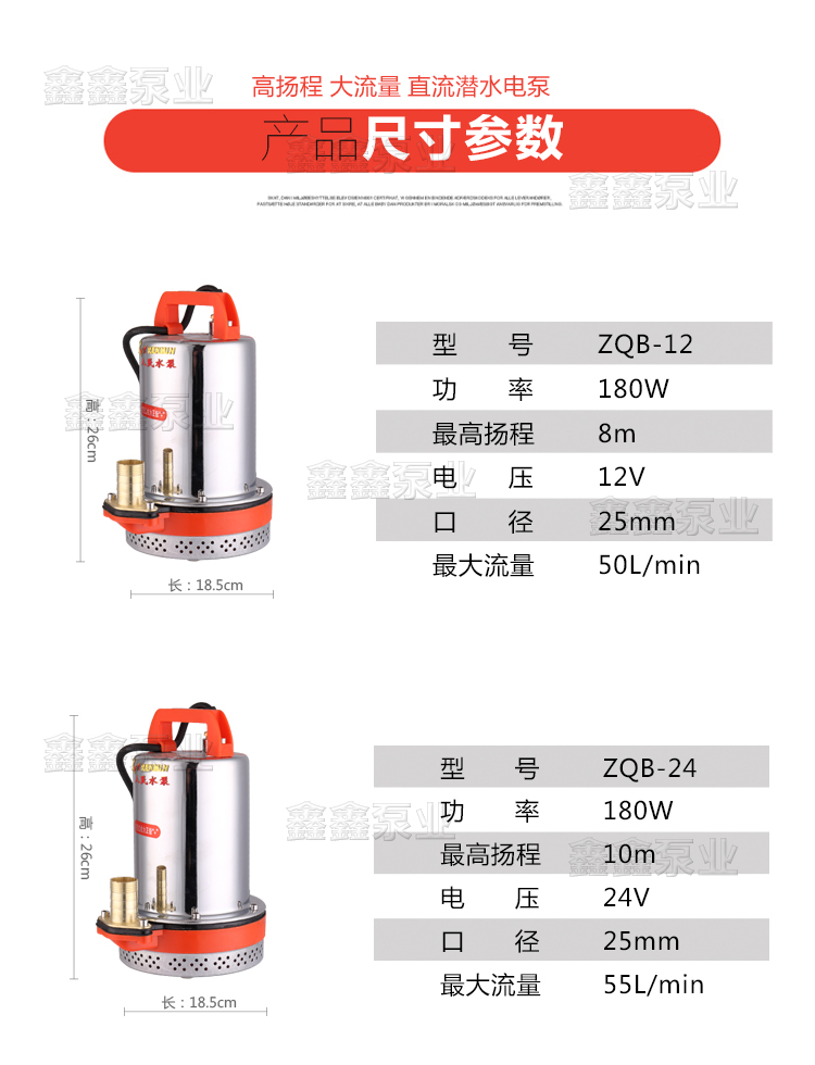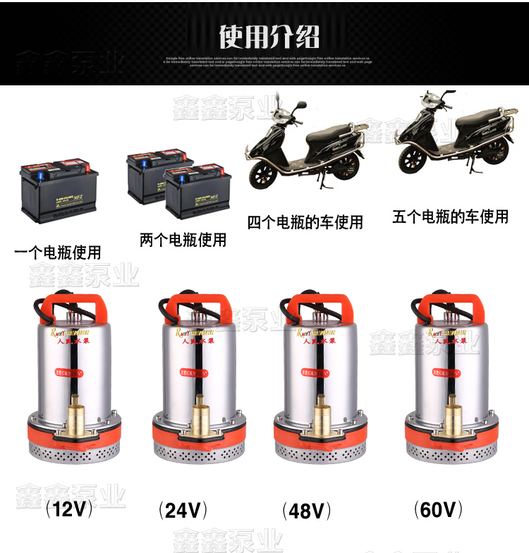 家用12V24V48V60V72伏直流潜水泵农用电瓶抽水机高扬程电动车水泵
