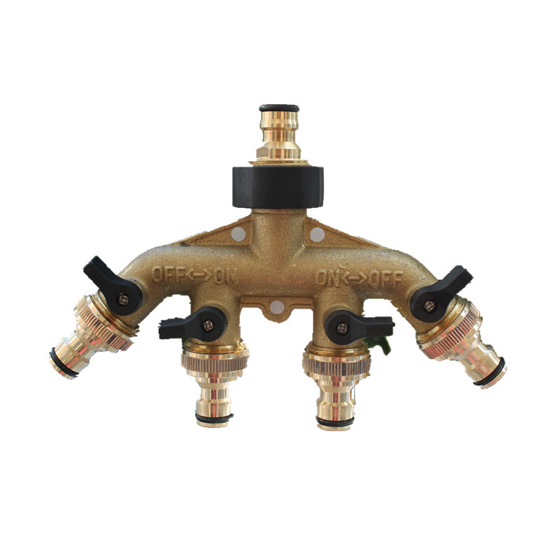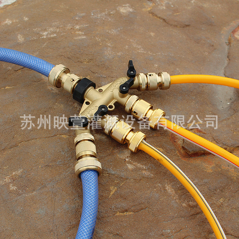 铜家用四通阀门分水控制器分流器浇花一分四奶嘴接头园艺灌溉