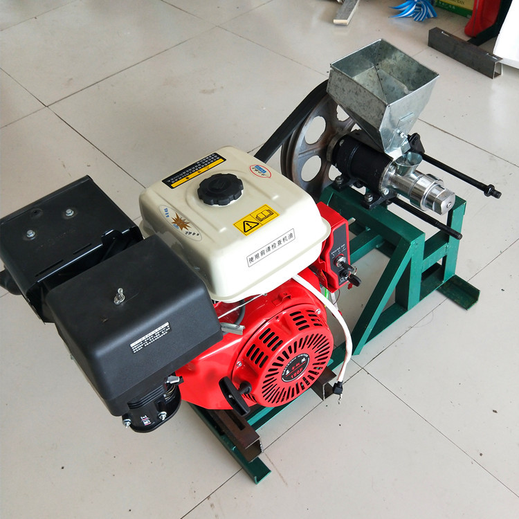 这是我们特别设计的,将3号大米膨化机与面粉膨化机(麻辣条机)有机结合在一块,用15或18匹(1100/1105)柴油机作为动力源,两台机子正好错开,皮带也校准,既可以生产月牙江米棍,又能膨化面粉。