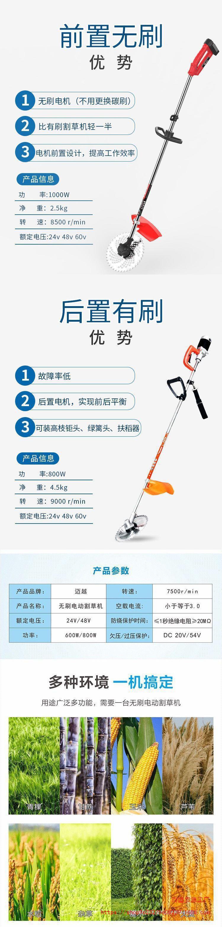 迈越充电式无刷电动割草机小型背负式除草机打草机家用草坪剪批发