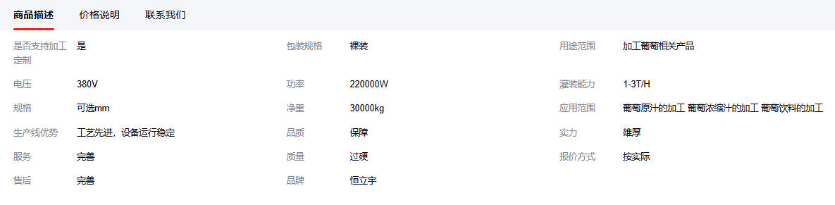 恒立宇 工业化葡萄汁加工设备 饮料 果酒加工 1-5T/H
