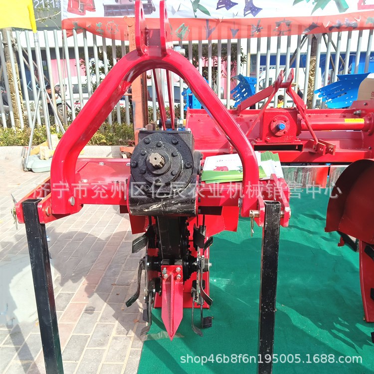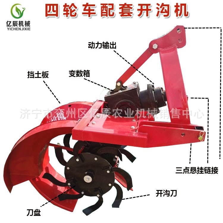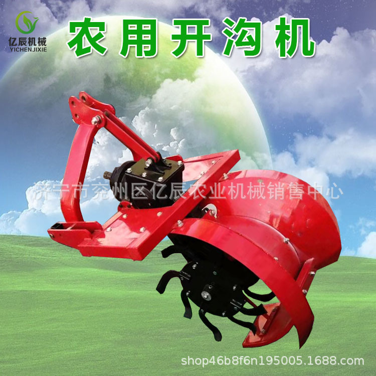 新款果树施肥开沟机是由四轮拖拉机配套使用,由拖拉机后输出轴带动变速箱 ,变速箱带动齿轮箱,齿轮箱带动开沟刀。主要用于松土质果园开沟施肥,也可以用于挖排水沟,该开沟机的配套动力为35—65马力拖拉机,不需要在单独购买动力,为你节约成本。是一款新型开沟设备。开沟宽度为约30-40厘米,开沟深度约25-40厘米,开沟速度每小时可达1000—1500米。比人工开沟效率提高40倍以上。所开沟形沟直、壁陡,沟深和沟宽统一,果树的开沟施肥工作。