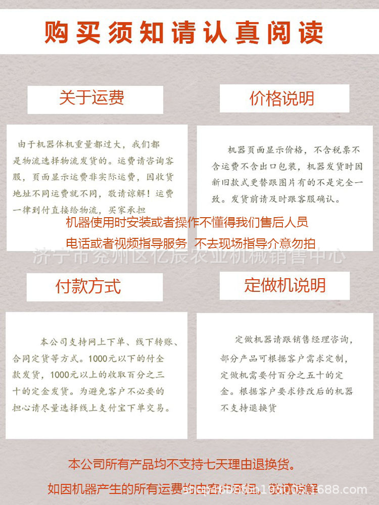 济宁市兖州区亿辰农业机械销售中心是农业机械、林业机械、畜牧业机械、田园管理机械等产品加工 批发的公司,拥有完整、科学的质量管理体系。济宁市兖州区亿辰农业机械销售中心的诚信、实力和产品质量获得业界的认可。
