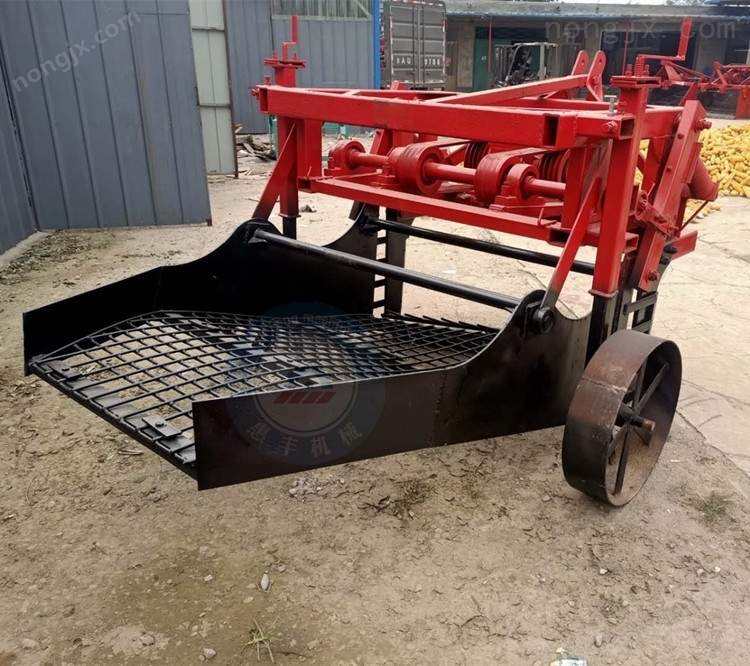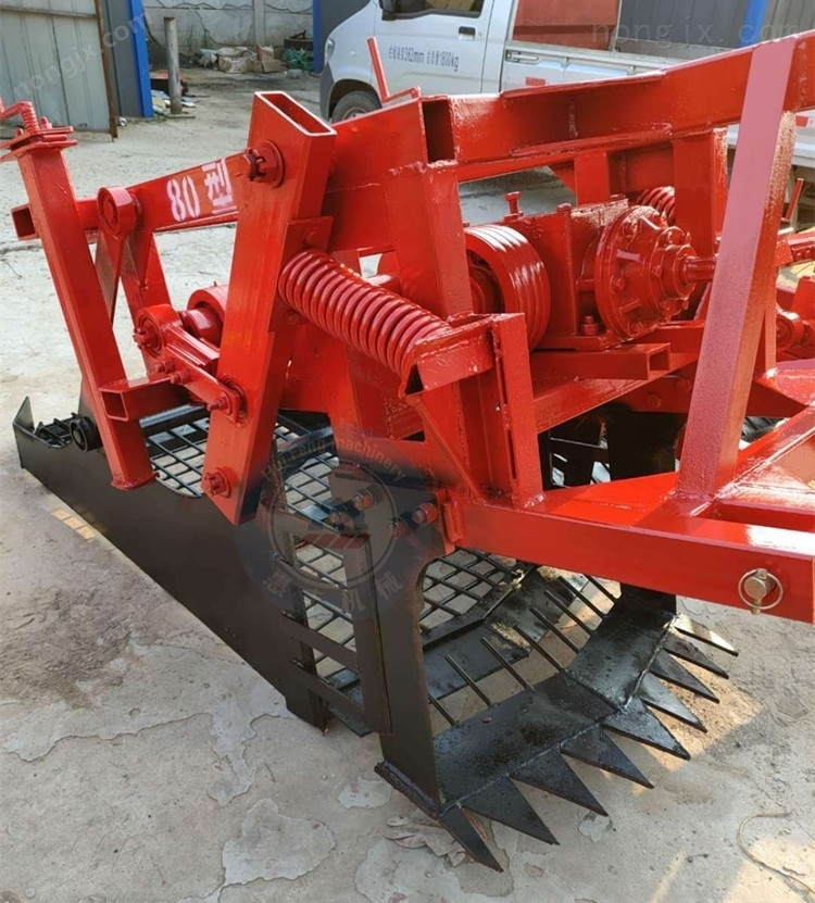 挖掘铲的摆幅,可以通过调节收获机连杆的长度来调整。三角带前面的连杆,负责左面挖掘铲的调整,两个立轴中间的连杆,负责右面挖掘铲的调整。将马铃薯收获机收获机提离地面,并使拖拉机迨速运转,把连杆锁紧螺母松开,调整相应的连杆,注意观察两面挖掘铲的摆动幅度,以两边删条不碰防护板为宜,直至调整到摆幅*,然后将螺母锁紧。
