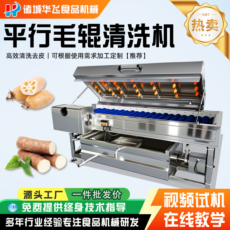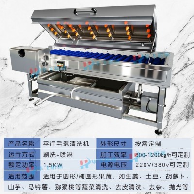 全自动平行毛辊清洗机土豆山药红薯生姜清洗去皮机高压喷淋清洗机