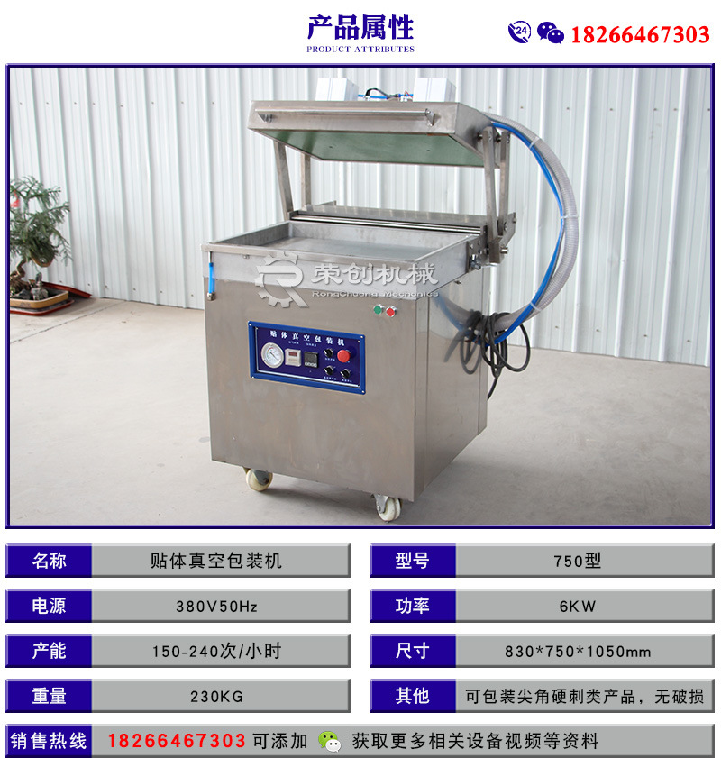 荣创贴体真空包装机可以防止冷藏时产生冰晶及防止产品表面因冰冻灼伤而干裂。可以做多产品的组合包装,消费者可部分开启包装食用,对于吃不完的食品,可以将剩余包装内产品放回冰箱继续冷藏供日后再食用,卫生又方便。