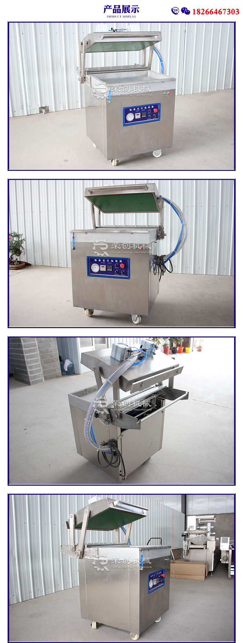 2、整机采用平板真空室设计,方便对在包装过程中掉落的油脂、碎屑等物的清洁、擦拭。主体结构材料均为304不锈钢,符合食品卫生要求。