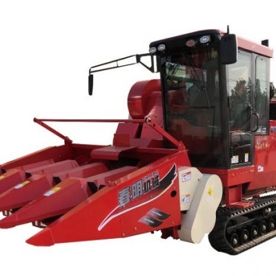 该产品为履带式自走机型,整机设计合理,结构紧凑,重心低,机动灵活。装配国产名优企业国四柴油发动机,功率强劲,油耗低,性能指标先进;采用3档静液压无级变速组成式变速箱,操作简便;卧式摘穗板式收获装置,结构简单,籽粒破碎率低;螺旋胶铁辊剥皮装置,剥皮效果好;前置甩刀式秸秆粉碎装置,还田效果好;侧翻式液压卸粮,卸粮方便。采用无方向盘的操纵杆操控方式,实现大型车辆如玉米收获机的360度快速转弯,转弯快速高效,不会出现遗留死角,从而保证了作物的完全收获;采用履带式行走机构,接地受力面积大,可实现泥泞地作业,改变现有玉米收获机无法泥地作业的限制,扩展其适用范围,使用安全可靠,实用性强。
