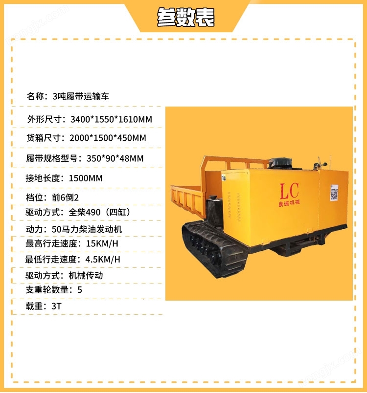 履带运输自卸车能适应水稻田、沼泽地、泥泞的田间道路、崎岖的山路、松软的草地和沙漠、湿滑的冰面和雪地等复杂恶劣路况,在农林果园运输、货场装载、水利建设、基建工程、矿山场所应用广泛。