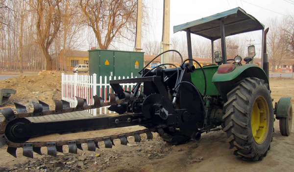 新式开沟机采用了30马力以上的动力,为开挖不同宽窄的沟型,可以改装成单双链条两种,可开挖宽度10-80公分不等,深度可达1.8米的沟型,本实用新型特点是开挖速度快,一般情况下300-600米/小时,高可达600米/小时,故障率低,简单实用。