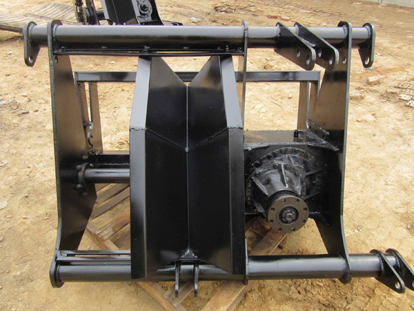 新式开沟机是一种高效实用的新型链条式开沟装置。其主要由动力系统、减速系统、链条传动系统和分土系统组成。柴油机经过皮带将转动传递到离合器后,驱动行走变速箱、传动轴、后桥等来实现链条式开沟机的向前或向后的直线运动。