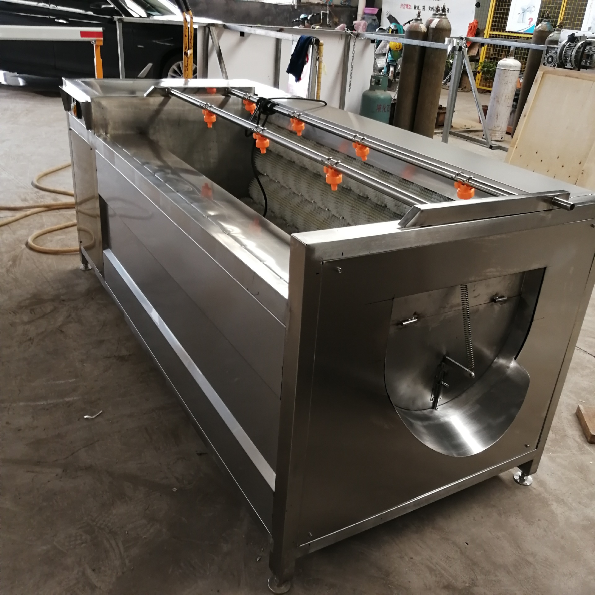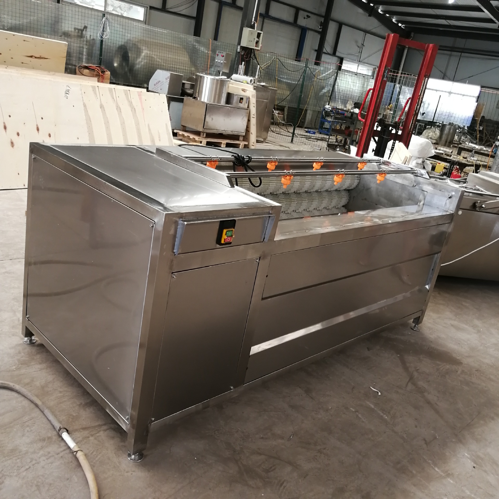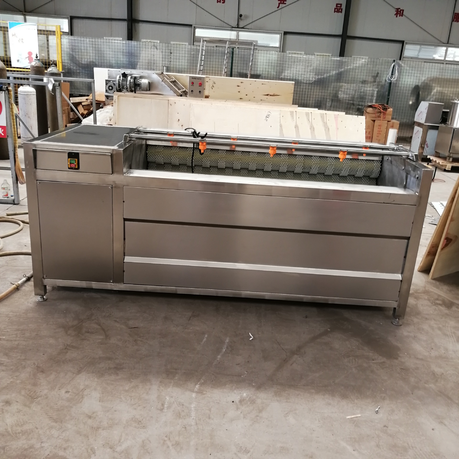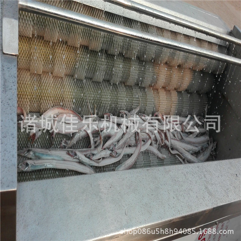 毛辊脱鳞清洗机主要由电机、变速器、8-12支毛辊等组成,有1200型、1500型、2000型三种型号,可以根据客户的产量来设计不同的型号。全机采用不锈钢制作,不锈蚀、清洁卫生。毛辊采用特制的软毛制作,不会对鱼体造成损伤,去鳞干净、效率高,耗能小,旋转出料。