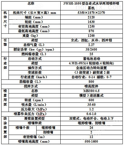 成帆3WSH-1050型自走式水旱两用喷药机技术参数: