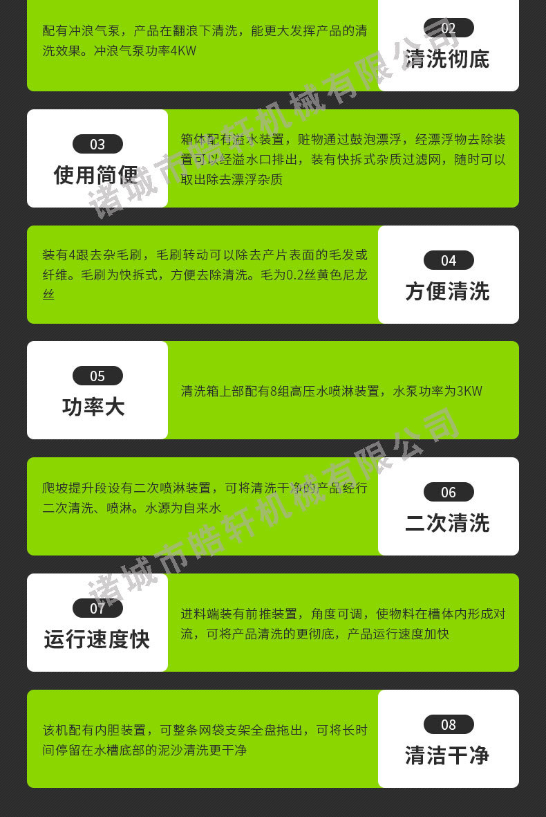 详细信息 订货号Hx-4000 加工定制是 货号Hx-0317 种类洗果机 品牌皓轩 型号Hx-4000 功率3.7(kw) 电压380(V) 外形尺寸4000*1250*1200(mm) 产品用途洗菜机 净重450(kg) 包装简易