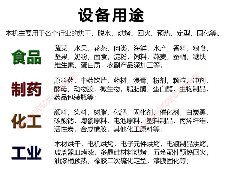 应用领域医药、化工、食品、农副产品、水产品、轻工等行业加热固化、干燥脱水