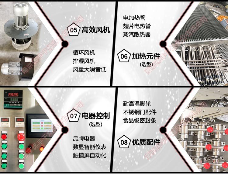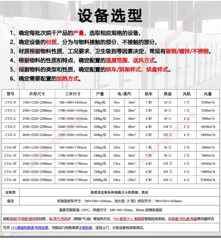 规格标准单门单车(24只烘盘)60kg/批,标准单门单车(30只烘盘)75kg/批,加大单门单车(40只烘盘)100kg/批,加大单门单车(48只烘盘)120kg/批