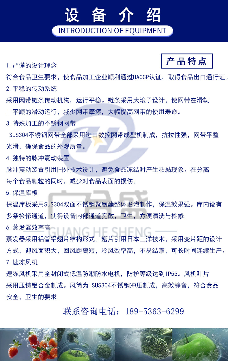 隧道式速冻流水线设备海鲜面食肉类速冻机饺子食品冷冻速冻设备
