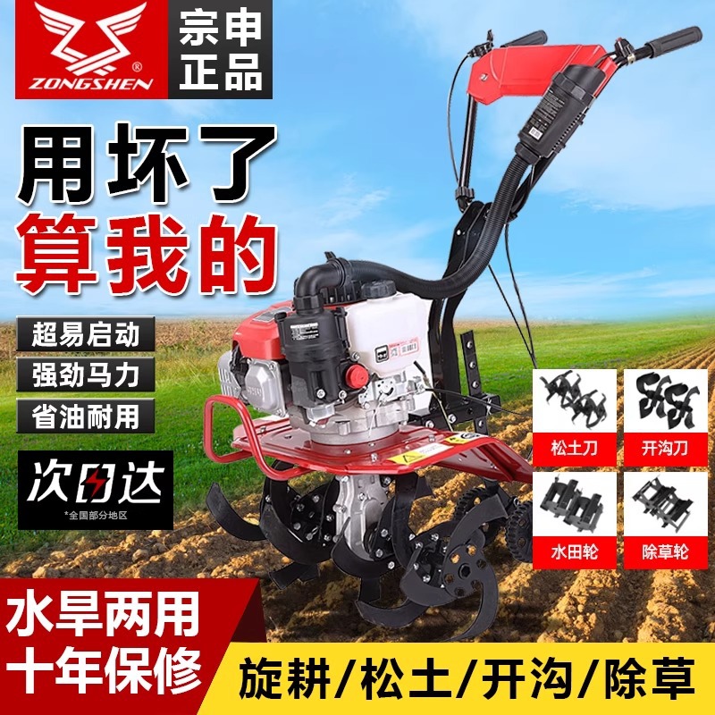宗申微耕机四冲程小型农用耕地机多功能除草开沟旋耕开荒松土神器
