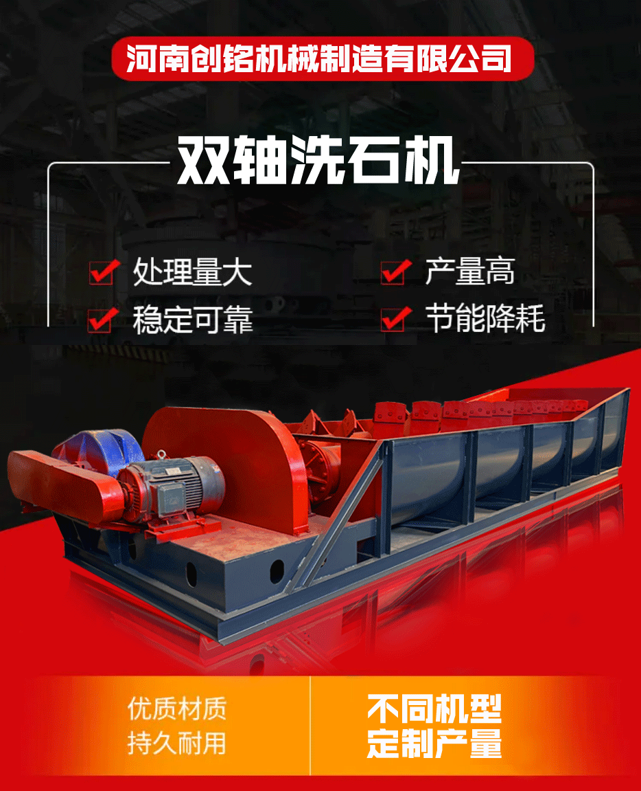 柴油版干湿两用双轴洗石机锰矿洗砂机工作原理 水洗设备现货直销