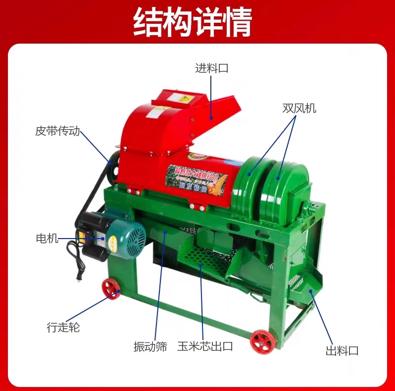 电动玉米脱粒机新款苞米脱粒机大二型双风三层筛网加厚棒子脱粒机