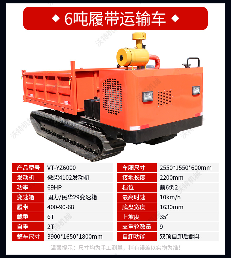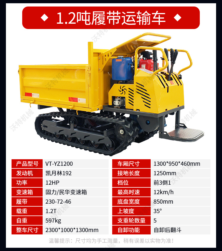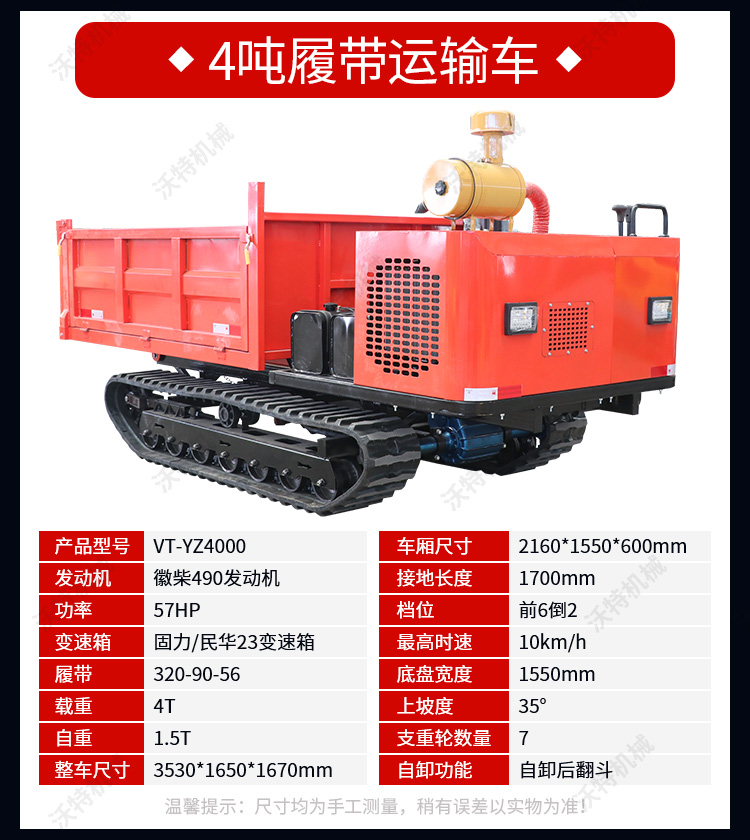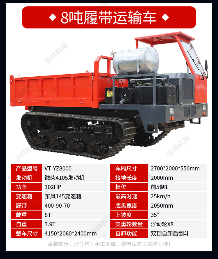 爬地虎履带运输车农用小型全地形山地工程果园自卸柴油木材搬运车