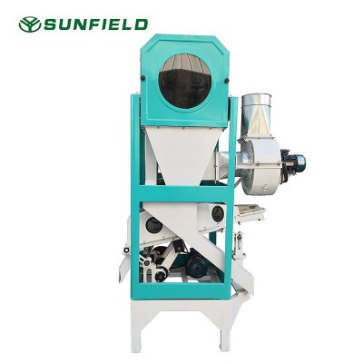 ![]() | 独特的组合清理去石机 ◆清杂与去石分体式设计,结构紧凑清理效果好 ◆清杂部分采用多层滚筒筛机构,清杂效率高,清理干净;能去除细杂并肩石。 ◆去石部分采取大风量吸风式设计,风量大,去石效果好; ◆高强度吸振轴承配置,机身运动平稳、牢固可靠、振动小、低噪音,扬尘少。 |