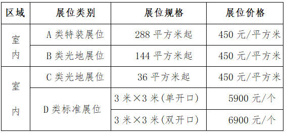注:1、特装搭建费用企业自理,室内特装展位,可使用桁架、铝型材、木料等材料搭建,室外特装展位,务必使用TRUSS架材质搭建,特装搭建由组委会指定搭建商承建。