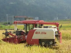 - 收割机一响,红旗村的稻子“躺”着进粮仓!