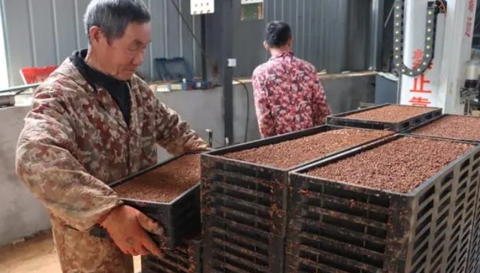 走进汨罗市科龙水稻种植专业合作社,两条育秧生产线正在全力开动,流水线将浸泡好的种子均匀撒播在秧盘上,并自动浇水,铺上一层营养土,工人们正忙着上盘、码垛,移入密室催芽。