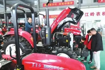 眼下,正值春耕备耕时节,记者走进荆州高新区两湖农机市场,崭新的东方红拖拉机、小型耕田机、播种机和璇耕机等大中型农机具排列整齐,不少农民前来咨询购机。