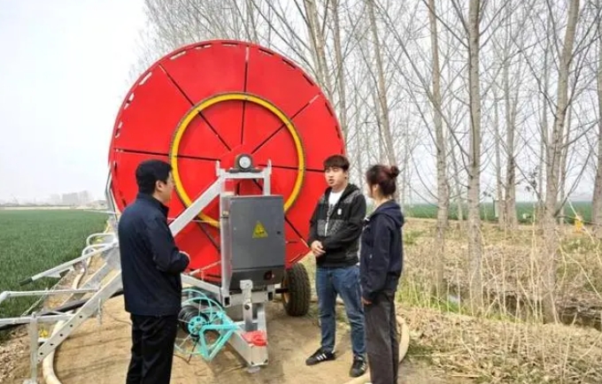 同样实现“懒人模式”的还有恒砺卷盘式喷灌机。“一天可均匀浇地60亩左右,一个星期可浇水300—500亩土地。使用手机系统远程操控放管收管,调控水分流量以及设备启动与停止,真正意义上实现了自走自停,无需人工。”山东恒砺机械设备制造有限公司的孔玉介绍道。