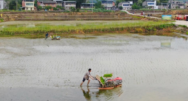 “现在插秧和以前相比完全不一样,传统插秧1个人一天仅能插1亩左右,现在进行机械化插秧,1名农机手一天便能完成30亩左右,人工只需要补漏补缺,大大提高了插秧的效率。”彭学勇说。