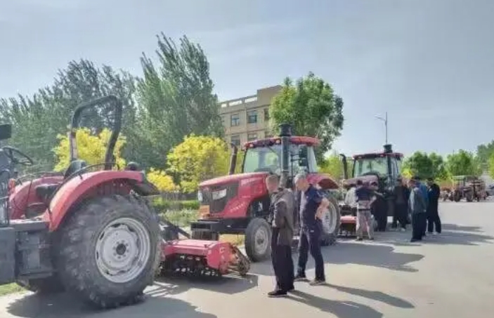 活动现场,拖拉机、联合收割机等各种农机排列整齐,农机年检组工作人员按照相关规范及标准,对各个农机具的制动、转向、灯光、轮胎、安全防护、安全设施等方面的技术状况逐项检查验收,以确保农机处于优良的工作状态,在检验中存在安全隐患的农机,要求车主及时维修整改,对检验合格的农机现场发放拖拉机和联合收割机安全技术检验合格证明。