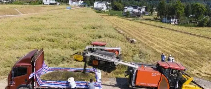 “我们采用机械化收割,相比传统人工收割的效率要高上几十倍。10多分钟就可以收完一亩。”农机手唐仕红介绍,传统人工收割2个人一天才收一亩,机械收割一天能收50亩到60亩。