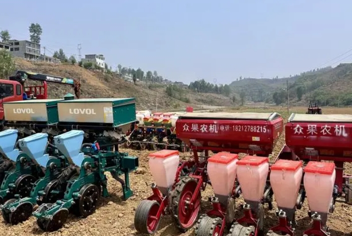 高性能精量播种机也为大方县的农业生产注入了新的活力。潍柴雷沃4行大豆/玉米播种机、河北农哈哈3+2(悬挂式)大豆/玉米播种机、湖南桑铼特3+2大豆/玉米精量播种机等穿梭在田间,进行现场操作演示。