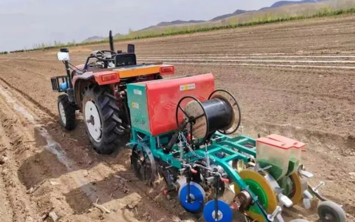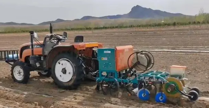 在北斗导航智能系统的帮助下,播种机开展旋地、起垄、播种、覆膜、滴灌、平整、施肥等作业一气呵成,巴林右旗今年巧用北斗赋能数字农业,全面提升农机精准化作业水平,先后引进了北斗导航无人驾驶拖拉机、无人点喷植保机、智能播种机、变量施肥机等先进智慧农业设施设备,在北斗导航系统中设定好线路和地块数据,播种机械即可自行直线播种,每千米偏差不超过2厘米,播种精准度和效率均明显提高。
