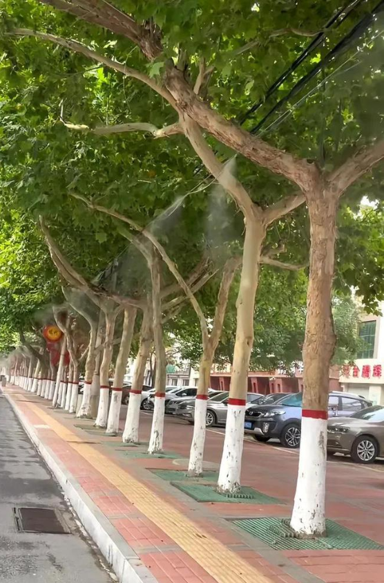 河北邢台大街上现奇葩一幕——大树底下装“喷雾器”。