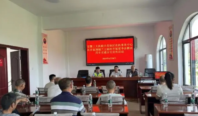 眼下正值夏耕农作时节,田间地头一片繁忙,农村地区人员和车辆出行务农增多。为进一步做好夏季农机安全生产工作,近日,苏仙辖区交警三大队联合区农机事务中心在许家洞镇兰王庙村开展农机车辆安全生产大检查、大宣传活动,全力抓好农机交通安全管理,杜绝各类农机事故发生。