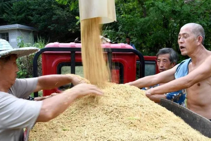 绵阳市三台县地处川北丘陵地区,是传统粮食生产大县。待傍晚热浪退去,县城周围金黄的稻田里轰轰隆隆地开进一台台收割机。割稻、脱粒、清杂……收割机在田里作业完毕,三台县北坝镇芙蓉村村民张明友就将三轮摩托车开过来,几分钟时间,1000多斤稻谷就卸在了车斗里。