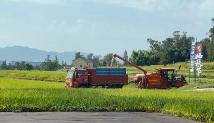 近日,梁平区水稻收割进入尾声,味源现代农业专业合作社(下称味源合作社)的农机手们赶在太阳出来前,开着收割机下田作业。