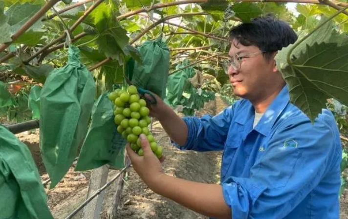 “以前我们用的塑料袋只有一个面透气,现在增加了透气面积,变成了三个面透气,这样就能让葡萄更好地呼吸。”王立君说,他们团队还改良了灌溉方式,将垄上的盐碱化物质通过水流冲刷下去,改善了土壤环境。