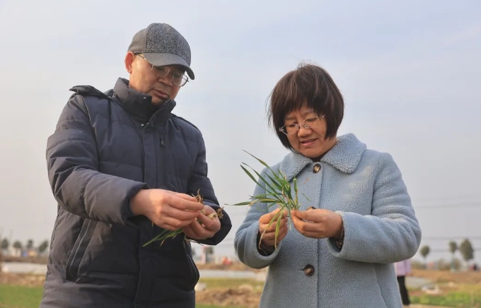 实地“把脉问诊”后,农技专家们又赶往位于佃庄镇牛王庙社区的农业科技示范展示基地了解麦苗生长情况。“这片麦苗植株壮实、分株多、疏密有度,长势很不错。”专家们边走边看,不时俯下身,轻拨土层,仔细察看小麦苗情和土壤墒情,嘱咐种植户根据麦苗生长阶段及时做好下一步麦田管理,确保丰产丰收。