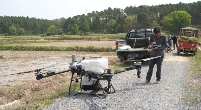 眼前这款植保无人机是种植大户何江购置的最新款式,它配备了先进的无人机摇臂、新增了雷达系统以及升级了承载重量和续航能力。何江操纵着无人机在农田上方匀速飞行,无人机按照预先设定的航线和参数,灵活穿梭、动态控制、精准感知,将化肥精准地播撒在田间。