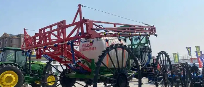 “这是我们经过多年自主研发的专利产品,自走式喷杆喷雾机,它的机械臂长近3米,车轱辘高2米多,可以悬空走在玉米地里喷药、喷肥,今年多台已出口俄罗斯。”密山市农机企业负责人李喜鹏说。