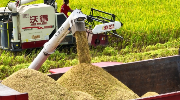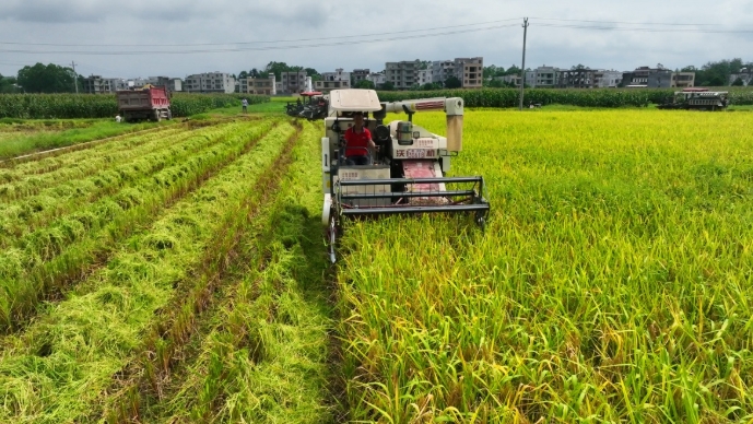 农业社会化服务正成为丰收“助推器”。博白县整合农机合作社、育秧中心等资源,为农户提供“耕种收烘销”全链条服务,今年早稻季投入农机具630余台,覆盖率超65%。博白县蓝文农机服务专业合作社副理事长庞广才介绍:“去年服务10万亩,今年预计扩大到12万亩。”政策扶持同步发力,博白县农业农村局组织技术骨干深入田间指导肥水管理,并对购买服务的农户发放补贴。