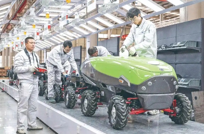 在江西省九江市柴桑区,各种各样的无人化新型农机轮番上岗,无人旋耕机可以沿着既定路线有序行驶,精准完成翻耕、起垄等工作;履带式无人测土机可以自动完成测土配方作业,对土质进行检测;无人割草机能够自己在田间进行除草作业,并将杂草切碎……如今,柴桑区的小麦、大豆已经实现全程机械化种植,水稻生产的全程机械化率达到92%。