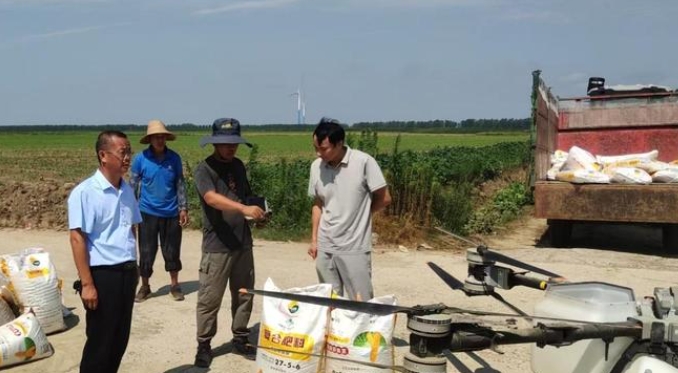 在杨林洲村外滩竹兴蔬菜种植专业合作社大豆高产示范基地,该镇农技服务中心主任董华兵仔细查看苗情,叮嘱合作社负责人要及时疏通“三沟”,降低梅雨期间强降雨带来的渍害影响,并对后期大豆化控和病虫害防治提出指导意见;农机服务中心主任李小军对无人机操作人员强调了施肥作业的操作安全注意事项。